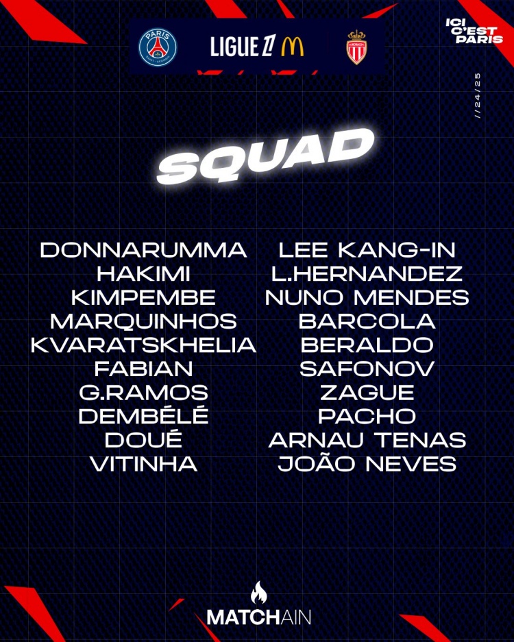 前鋒:克瓦拉茨赫利亞、貢薩洛-拉莫斯、登貝萊、杜埃、巴爾科拉