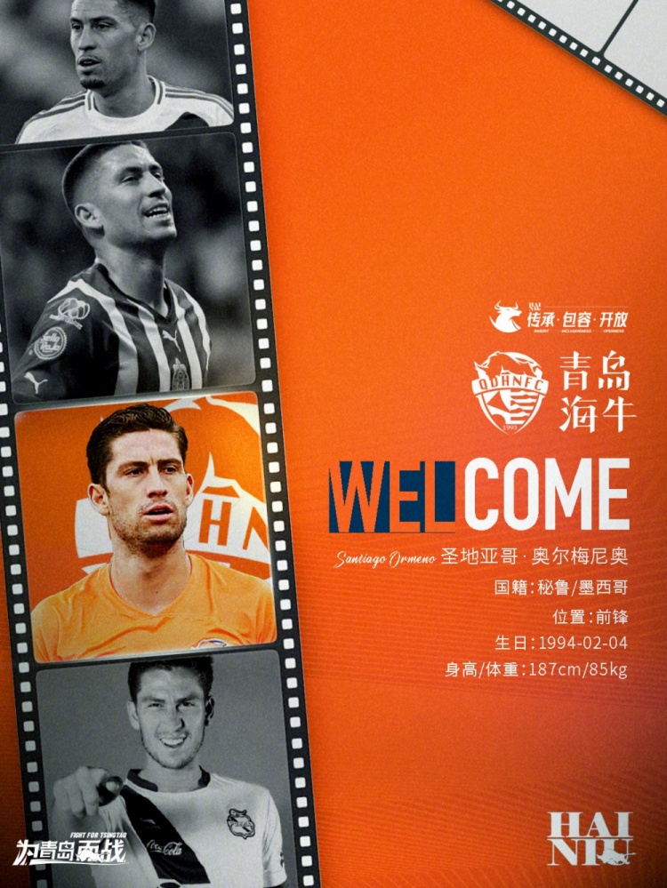 經(jīng)協(xié)商一致,擁有秘魯/墨西哥雙國籍球員圣地亞哥-奧爾梅尼奧(Santiago Orme?o)自由身加盟青島海牛足球俱樂部,他與俱樂部簽署合約為1+1,歡迎他的到來!