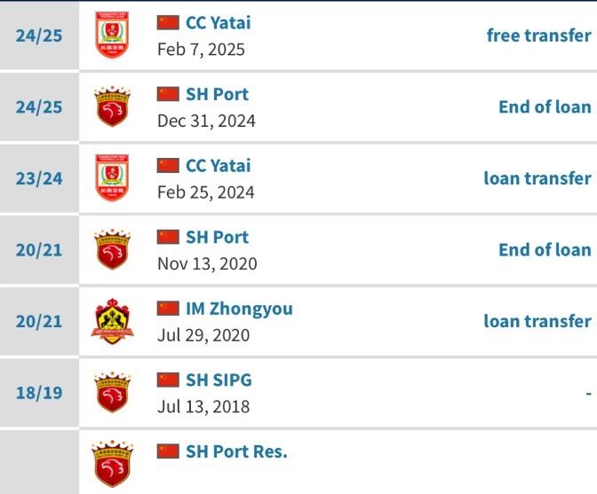 李申圓的個(gè)人頁(yè)面中顯示,今天他已經(jīng)以自由身轉(zhuǎn)會(huì)加盟長(zhǎng)春亞泰。