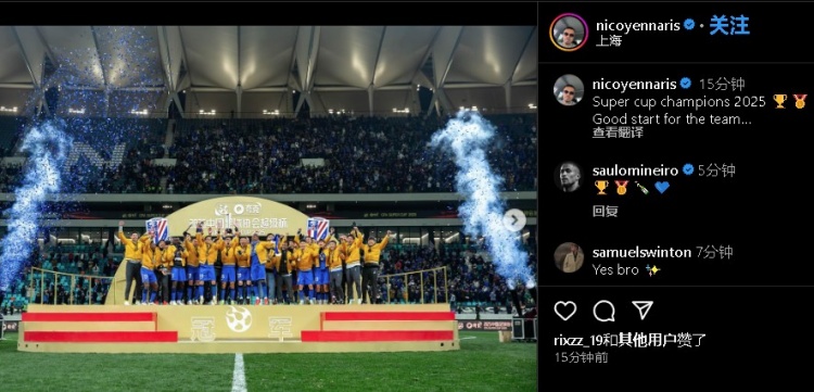 李可社媒:2025年超級(jí)杯奪冠,這是球隊(duì)的完美開(kāi)局。