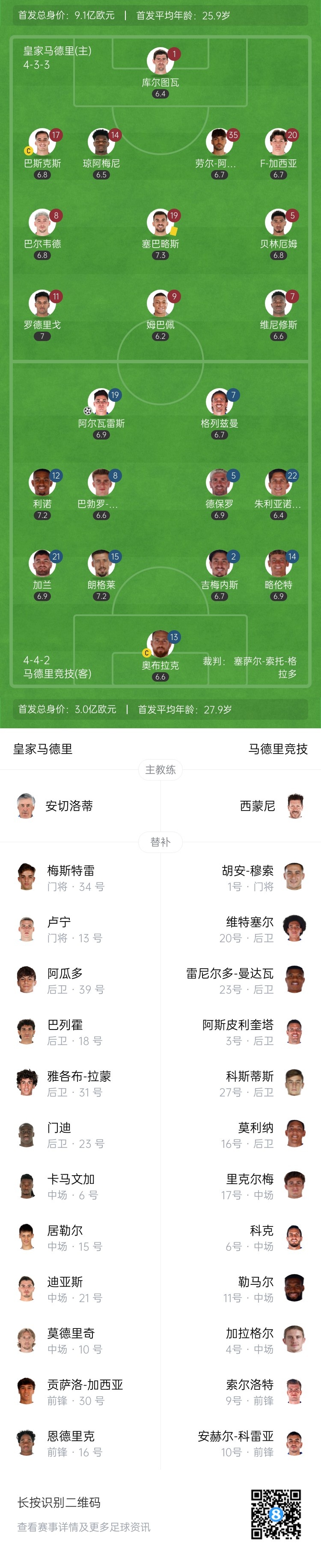 2月9日訊 北京時(shí)間4:00,西甲第23輪迎來(lái)榜首大戰(zhàn)!皇馬主場(chǎng)迎戰(zhàn)馬競(jìng),比賽在伯納烏球場(chǎng)打響。上半場(chǎng),瓊阿梅尼送點(diǎn),安切洛蒂掩面!阿爾瓦雷斯勺子點(diǎn)球破門(mén)!半場(chǎng)結(jié)束,馬競(jìng)暫時(shí)1-0領(lǐng)先皇馬。