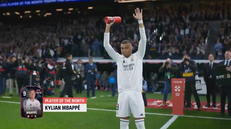 姆巴佩賽前展示西甲1月最佳球員獎(jiǎng)杯,接受球迷歡呼