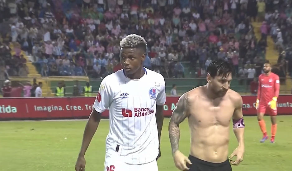 又光膀子了~上半場(chǎng)結(jié)束,對(duì)手要走了梅西的球衣