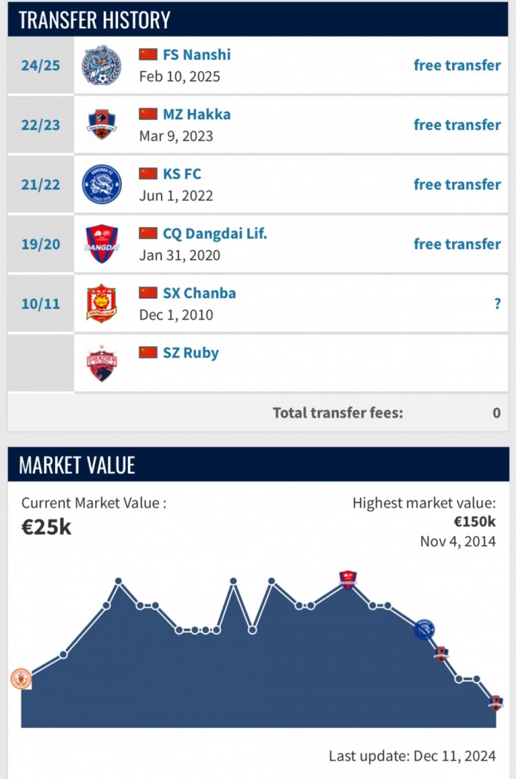 在德轉(zhuǎn)陳杰的個(gè)人頁(yè)面中,他已經(jīng)于2月10日加盟佛山南獅,不過(guò)合同年限并未披露。本次陳杰屬于自由身轉(zhuǎn)會(huì),因此佛山南獅無(wú)需支付轉(zhuǎn)會(huì)費(fèi)用。